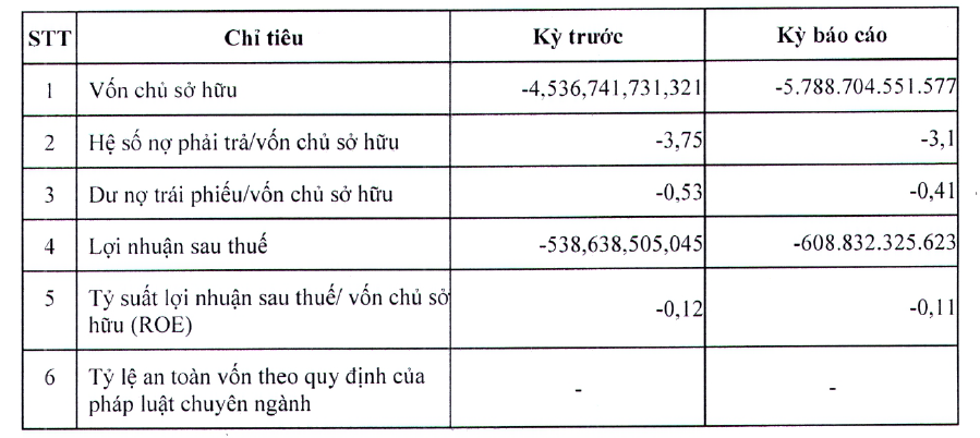 Trong khi đó, vốn chủ sở hữu của Xi măng Công Thanh là âm 5.788 tỷ đồng, giảm tới 1.252 tỷ đồng, tương ứng giảm gần 22% so với cùng kỳ năm 2022. Hệ số nợ phải trả/vốn chủ sở hữu của công ty ở mức 3,1 tương ứng nợ phải trả khoảng 17.963 tỷ đồng, tăng 2% so với thời điểm cuối năm 2022. Dư nợ trái phiếu/vốn chủ sở hữu là -0,41, tương đương dư nợ trái phiếu khoảng 2.368 tỷ đồng.