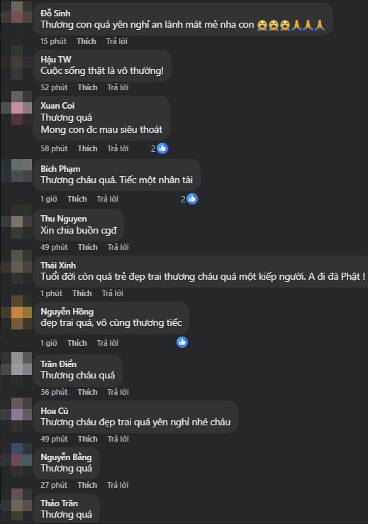 Rất nhiều bình luận bày tỏ xót thương chàng trai trẻ.