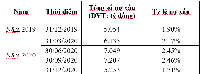 (Số liệu nợ xấu qua các quý năm 2020. Theo báo cáo hợp nhất)