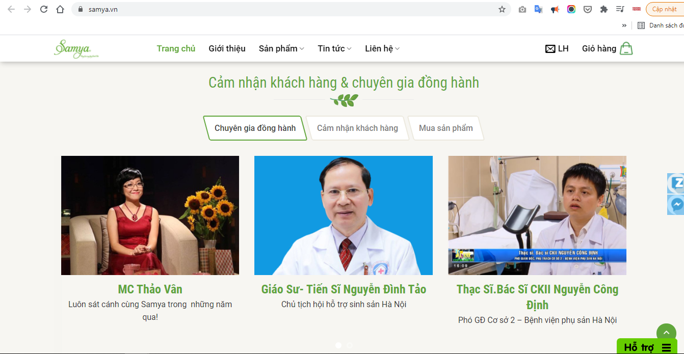 Hình ảnh bác sĩ được sử dụng tại website: https://samya.vn (Ảnh chụp màn hình)