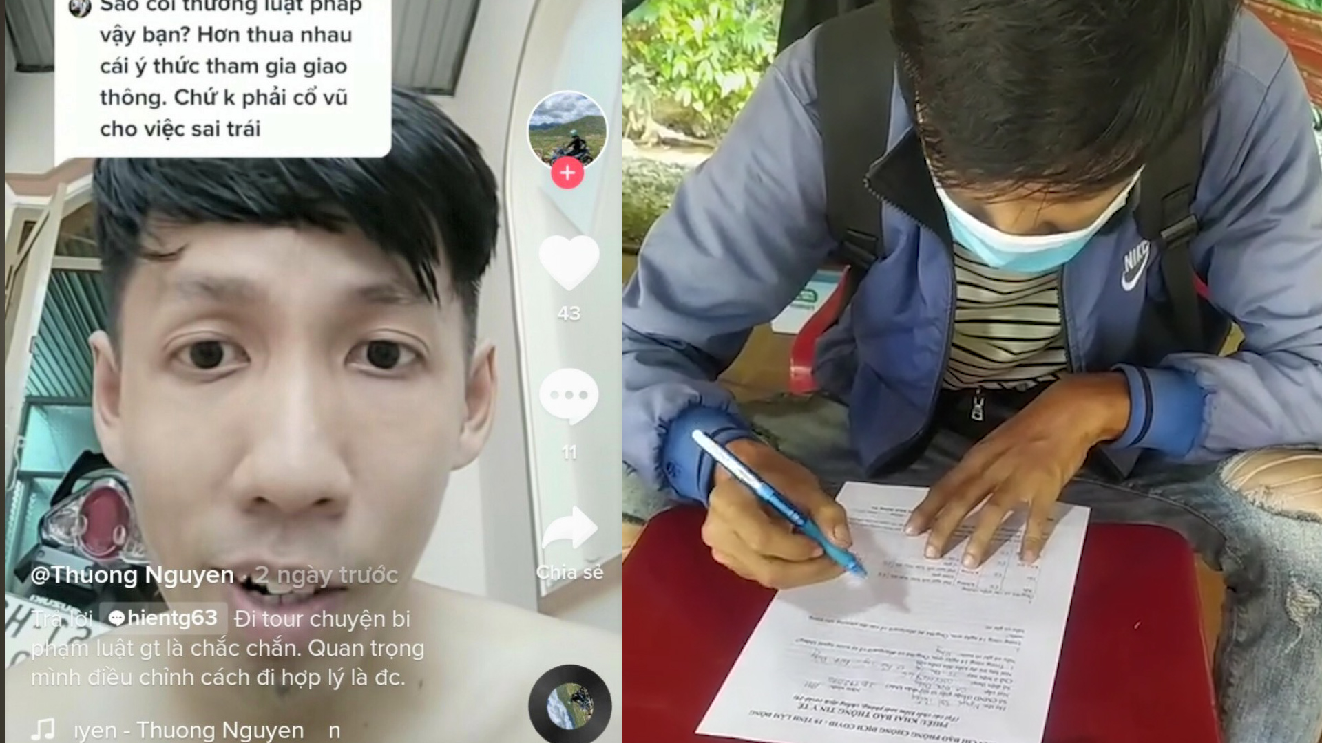 Nguyễn Tấn Thương đăng tải video dạy các khai báo y tế gia dối trên mạng xã hội TikTok. Ảnh chụp màn hình từ video.