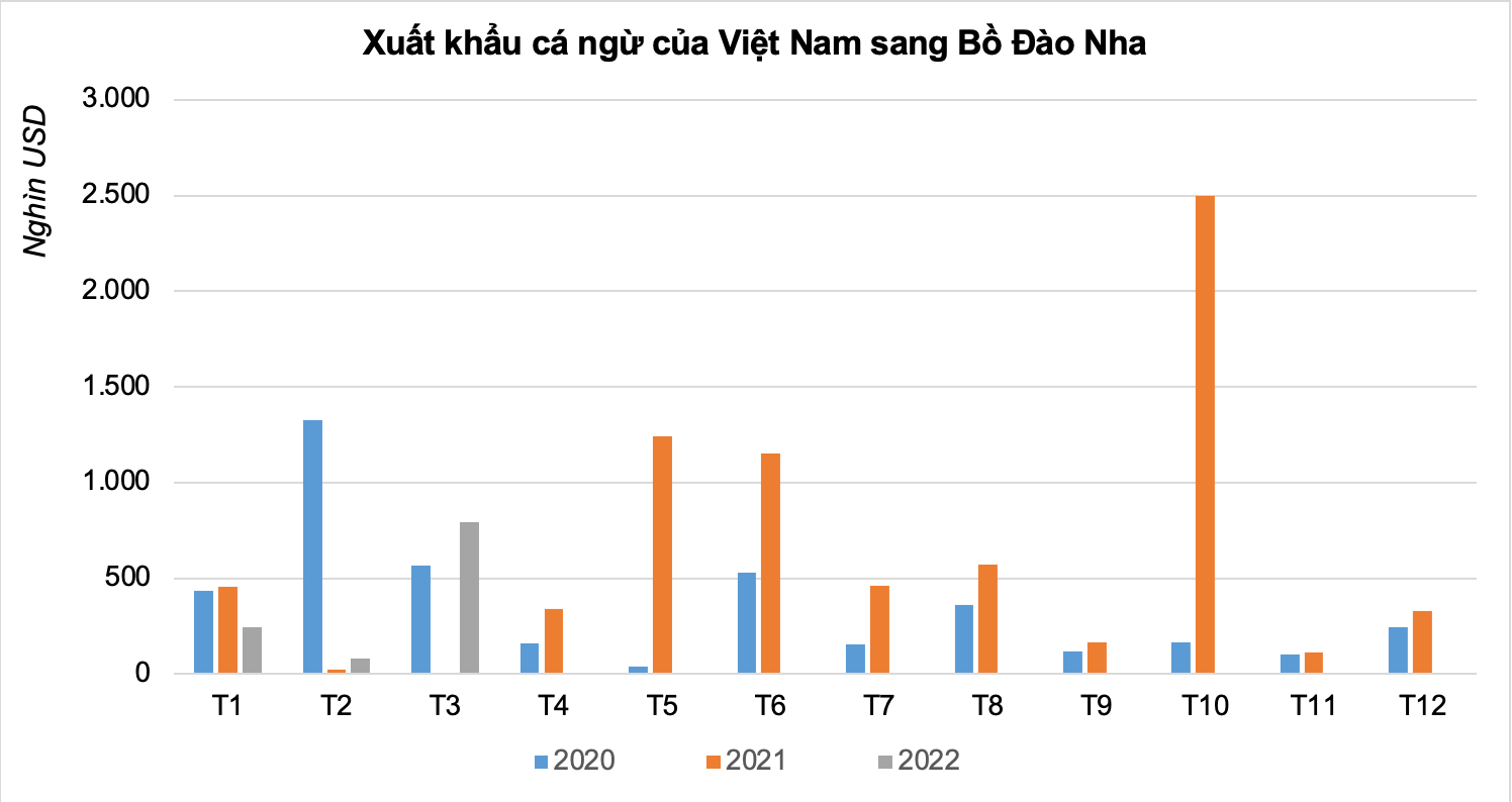 Sau khi tăng trưởng 75% trong năm 2021, xuất khẩu cá ngừ của Việt Nam sang Bồ Đào Nha tiếp tục tăng trưởng cao ở mức 3 con số trong 3 tháng đầu năm 2022. Giá trị xuất khẩu cá ngừ sang thị trường này đạt 1,1 triệu USD, tăng 135% so với cùng kỳ năm 2021.