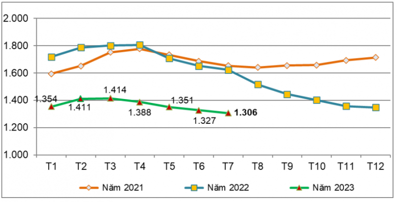 Tháng 7/2023, giá cao su xuất khẩu bình quân đạt 1.306 USD/tấn, giảm 1,6% so với tháng 6/2023 và giảm 19,6% so với tháng 7/2022.