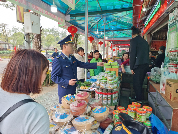 Các đội QLTT kiểm tra hàng hóa tại các quầy hàng kinh doanh trong khu vực Đền Hùng.