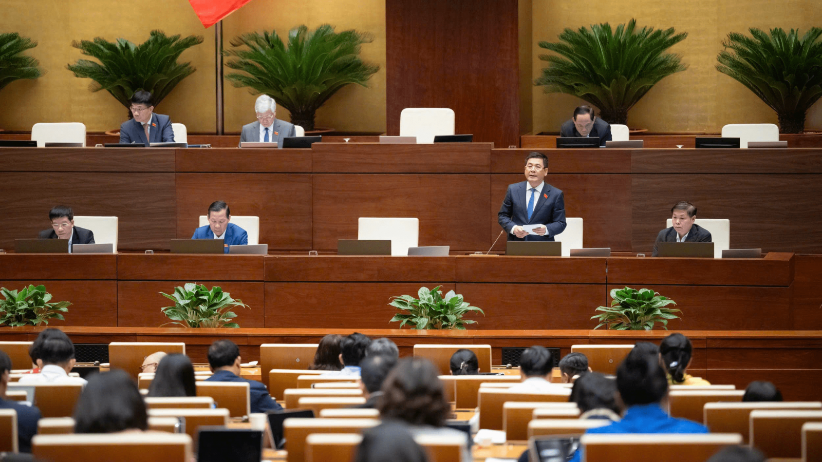 Bộ trưởng Bộ Công Thương Nguyễn Hồng Diên trình bày báo cáo tóm tắt tiếp thu, chỉnh lý dự thảo Nghị quyết về các cơ chế, chính sách phát triển năng lượng quốc gia giai đoạn 2026-2030, tại Kỳ họp thứ 10, Quốc hội khóa XV.