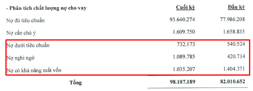 Trong cơ cấu, nợ nghi ngờ vọt mạnh nhất khi gấp 2,5 lần lên 1.089 tỷ đồng; nợ dưới tiêu chuẩn tăng 35% lên 732 tỷ đồng; nợ có khả năng mất vốn lại giảm 26% so với đầu năm về còn 1.035 tỷ đồng. Số dư nợ xấu của ABBank đã tăng 20,8% so với đầu năm lên mức 2.857 tỷ đồng. Tỷ lệ nợ xấu tương ứng tăng từ 2,88% đầu năm lên mức 2,91%.