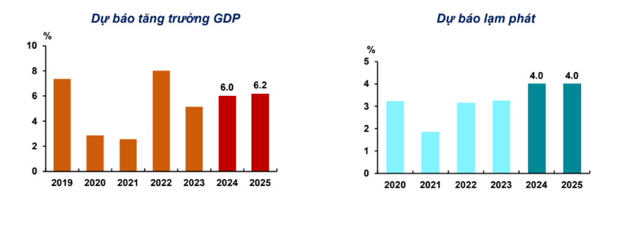 Dự báo tăng trưởng GDP và lạm phát của Việt Nam trong năm 2024 và 2025.