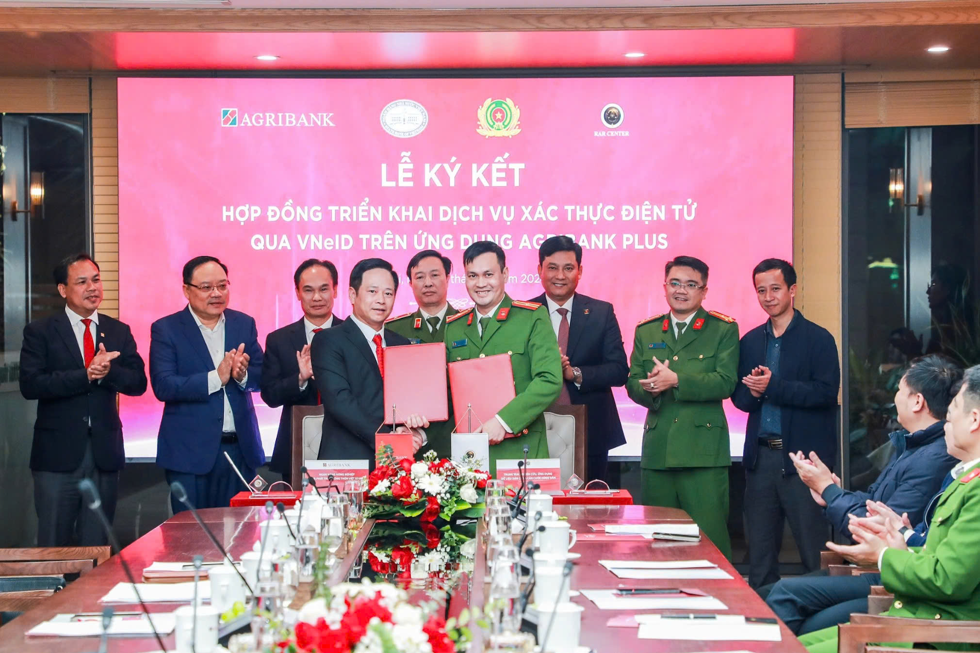 Lễ ký kết triển khai dịch vụ xác thực điện tử qua VNeID trên ứng dụng Agribank Plus giữa Agribank và Trung tâm RAR - Bộ Công an