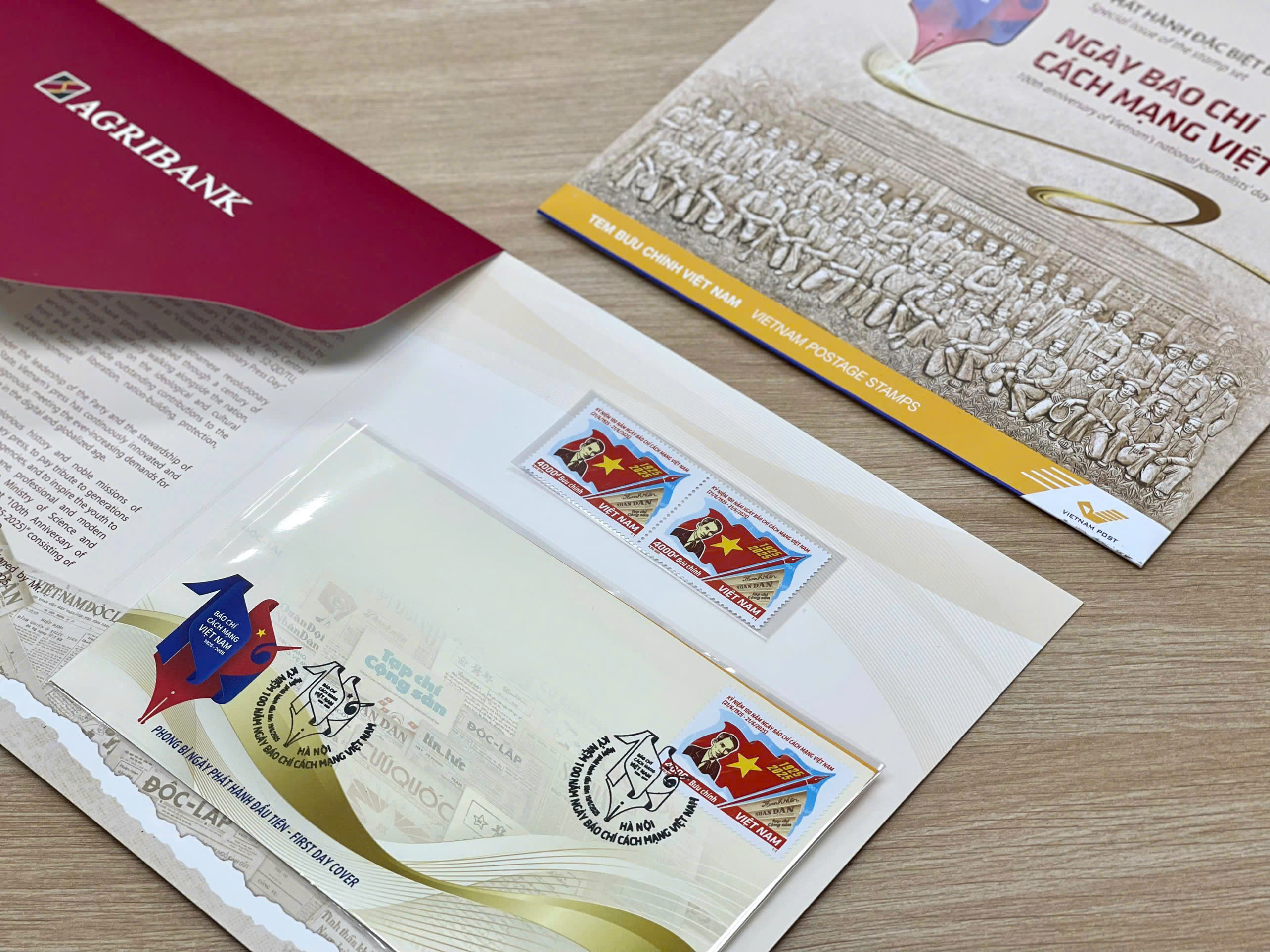 Agribank tài trợ phát hành bộ tem tri ân 100 năm Báo chí Cách mạng Việt Nam.