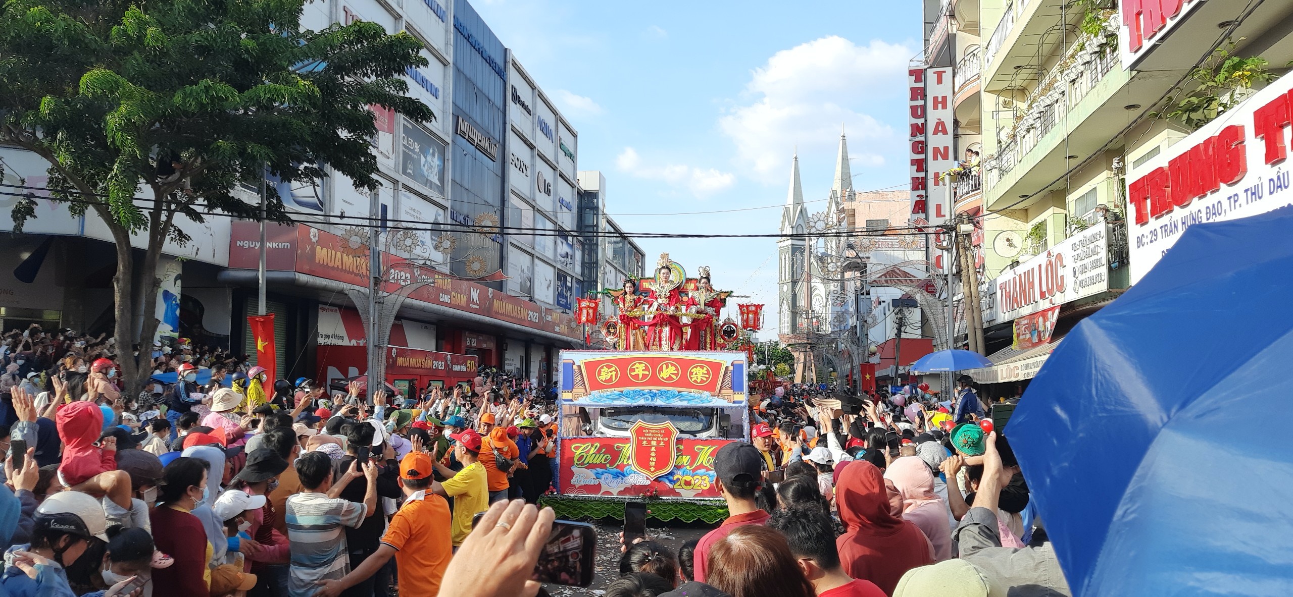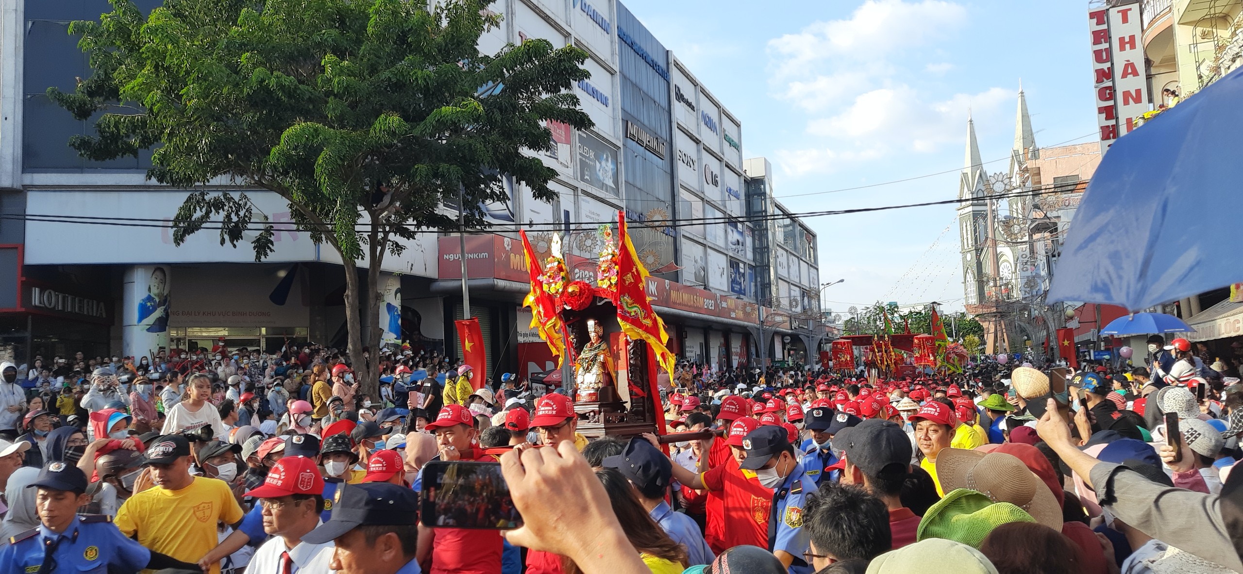 Hàng nghìn người dân chen lấn xem Đại lễ cung nghinh Thánh giá Thiên Hâụ Thánh Mẫu xuất du thịnh hội 2023.