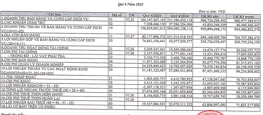 Quý 4/2025 đi lùi, lợi nhuận cả năm không đạt kế hoạch