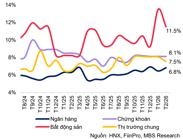 Rủi ro tín dụng tiếp tục thể hiện qua tình trạng chậm thanh toán. Trong tháng 2, thị trường ghi nhận 4 mã trái phiếu chậm trả gốc hoặc lãi với tổng giá trị khoảng 694 tỷ đồng. Lũy kế đến hết tháng 2, tổng giá trị trái phiếu chậm nghĩa vụ thanh toán lên tới khoảng 18.700 tỷ đồng, tương đương 1,3% dư nợ toàn thị trường. Dù tỷ lệ này chưa quá lớn, nhưng trong bối cảnh áp lực đáo hạn tăng nhanh, đây vẫn là tín hiệu cảnh báo sớm về rủi ro lan rộng nếu điều kiện thanh khoản không được cải thiện.