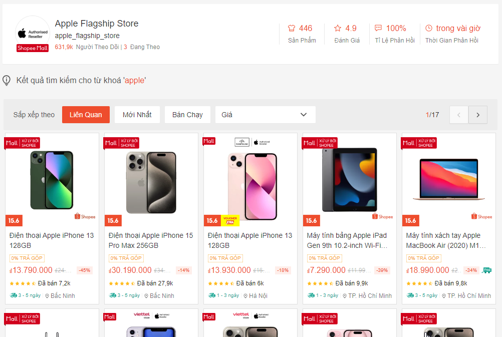 Trước khi ngừng hoạt động, gian hàng chính hãng của Apple trên nền tảng Shopeey được ra mắt trên Shopee vào tháng 10/2020 có hơn 631.000 người theo dõi.