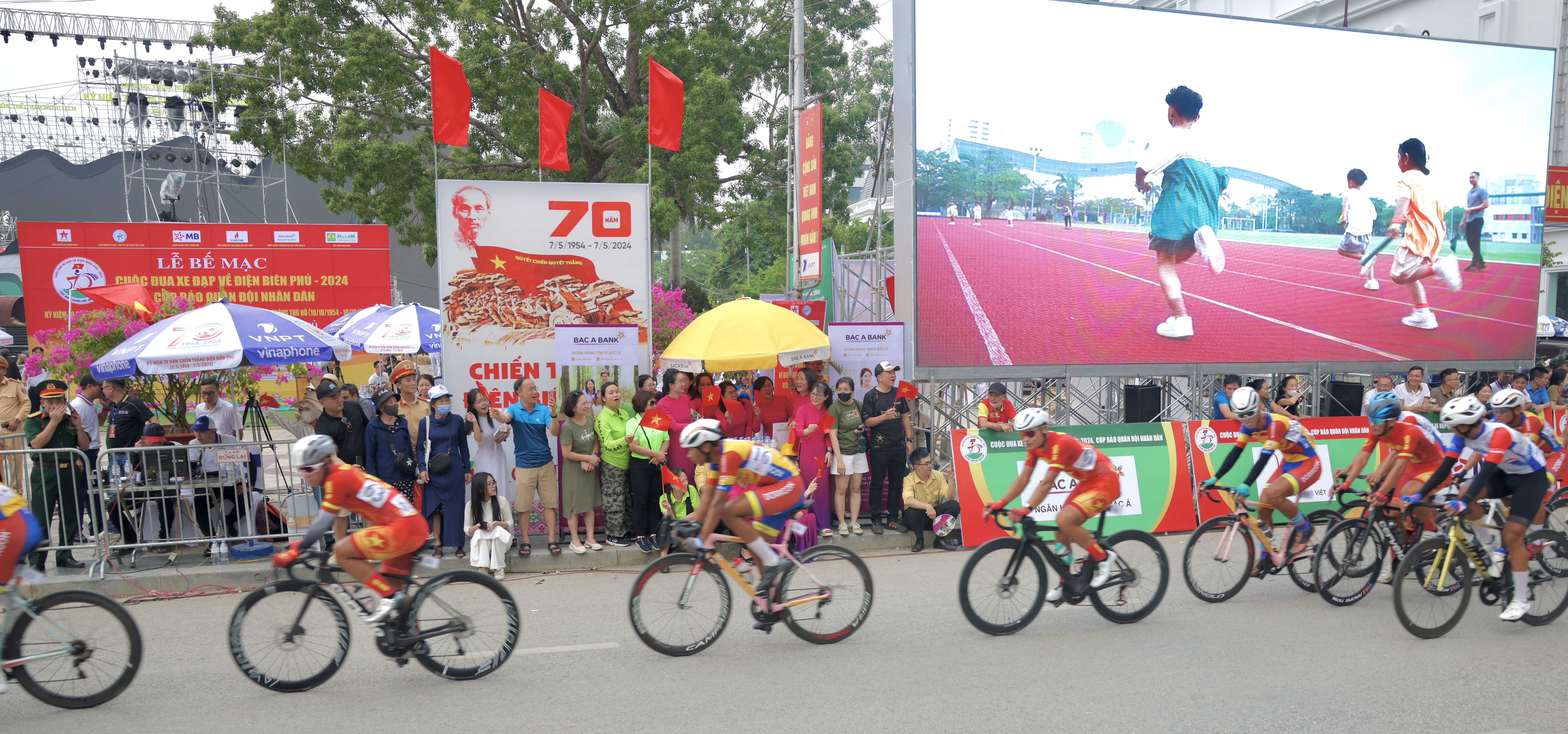 Trong những ngày đầu tháng 5 lịch sử, Ngân hàng TMCP Bắc Á (BAC A BANK) đồng hành cùng chuỗi hoạt động tri ân, hướng về Điện Biên, trong đó nổi bật là đồng hành cùng Cuộc đua xe đạp “Về Điện Biên Phủ 2024 - Cúp Báo Quân đội nhân dân”- gây quỹ xây trường học cho vùng sâu; Trình chiếu 3D mapping bức tranh Panorama 3D “Chiến dịch Điện Biên Phủ”.