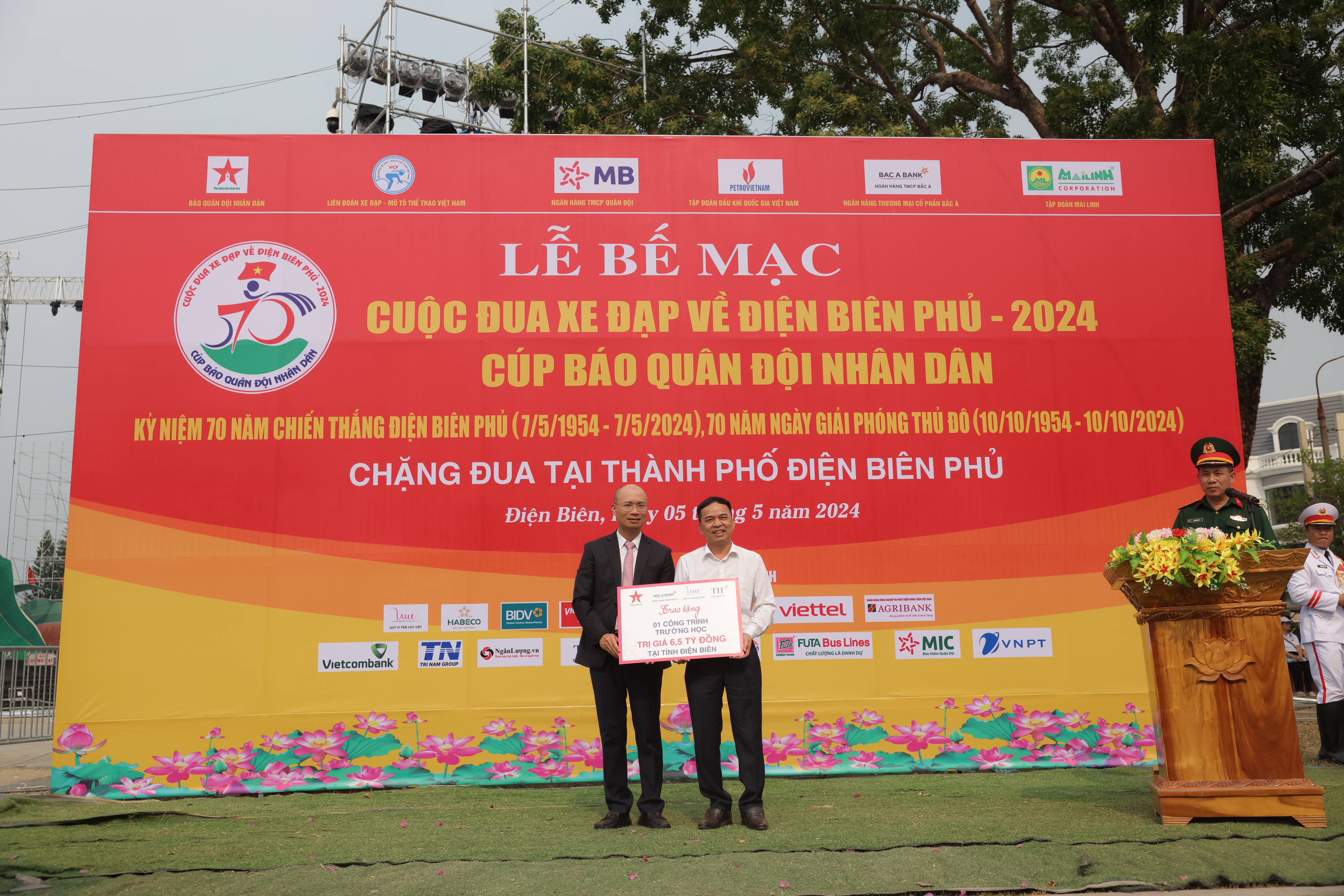 Phát biểu tại Lễ Bế mạc - Chặng đua tại Thành phố Điện Biên Phủ ngày 5/5 vừa qua, ông Chu Nguyên Bình - Phó Tổng Giám đốc Ngân hàng TMCP Bắc Á chia sẻ: “Năm 2024 là một dấu mốc đặc biệt khi Ngân hàng TMCP Bắc Á kỷ niệm 30 năm thành lập (17/09/1994-17/09/2024). Trong suốt hành trình 30 năm năm xây dựng và phát triển, chúng tôi tự hào về những thành tựu đã đạt được. Với mong muốn cột mốc này thêm ý nghĩa, chúng tôi đã quyết định tài trợ xây dựng một ngôi trường ở Điện Biên. Đây là công trình chào mừng 70 năm Chiến thắng Điện Biên Phủ, cũng là công trình chào mừng 30 năm thành lập Ngân hàng TMCP Bắc Á và 10 năm thành lập Quỹ Vì Tầm Vóc Việt (6/12/2014-6/12/2024), là một món quà ý nghĩa dành cho nhân dân tỉnh Điện Biên và góp phần vào thành công cho Cuộc đua”.