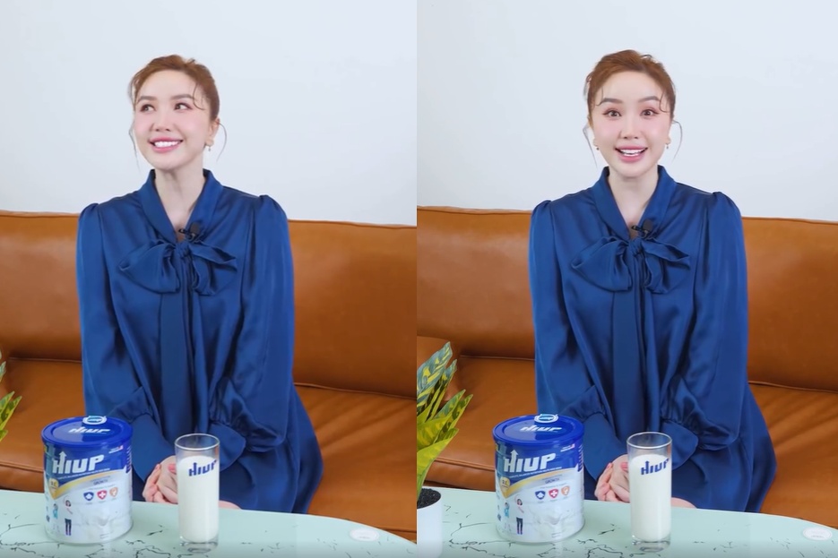 Hình ảnh Bảo Thy quảng cáo cho sản phẩm dinh dưỡng sữa HIUP đang gây ra nhiều tranh cãi trên mạng xã hội.