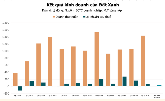 Trong khi đó, CTCP Tập đoàn Đất Xanh (DXG) được MBS dự báo lợi nhuận quý I chỉ khoảng 45 tỷ đồng, giảm 7% so với cùng kỳ. Nguyên nhân là doanh nghiệp chưa ghi nhận bàn giao lượng lớn sản phẩm dự án, còn phụ thuộc nhiều vào hoạt động môi giới. MBS cho rằng Đất Xanh có thể ghi nhận một số hợp đồng môi giới biên lợi nhuận cao, cùng một phần lợi nhuận tài chính khiêm tốn từ chuyển nhượng cổ phần tại Đất Xanh Miền Nam, nhưng mức đóng góp này chưa đủ để tạo bứt phá rõ trong ngắn hạn.