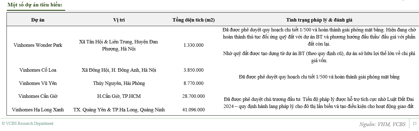 VCBS cho rằng CTCP VINHOMES (HOSE: VHM) có nền tảng tài chính khỏe mạnh và vị thế vượt trội trong tham gia đấu thầu phát triển dự án mới tại các khu vực trọng điểm. Được ưu tiên bởi các chính quyền địa phương khi thu hút đầu tư cho các khu vực đô thị, hành chính mới của thành phố.