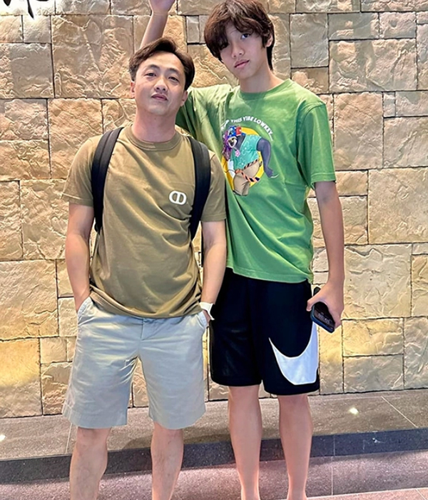 Cường Đô La nhiều lần đọ chiều cao với con trai Subeo nhưng đây là lần đầu dân mạng được biết chiều cao thật của quý tử 15 tuổi.