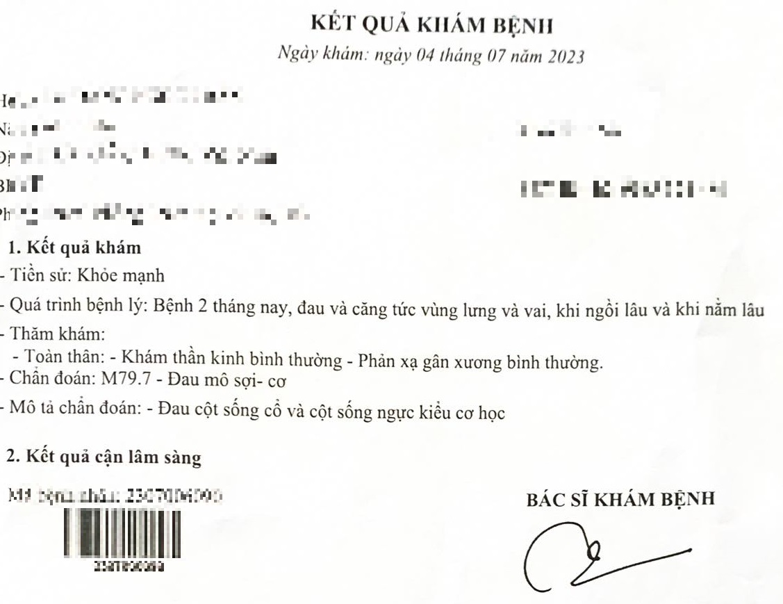 Theo đó, liên tục cảm thấy đau mỏi vai gáy, đau nhức cổ và vùng cột sống, thậm chí không thể nằm ngủ trong một khoảng thời gian, cuối tháng 4/2023, chị Tr. quyết định đi khám để tìm nguyên nhân và điều trị bệnh. Do không có bảo hiểm và tin tưởng bệnh viện lớn lại gần nhà, chị tìm đến Bệnh viện E để khám dịch vụ tại đây.