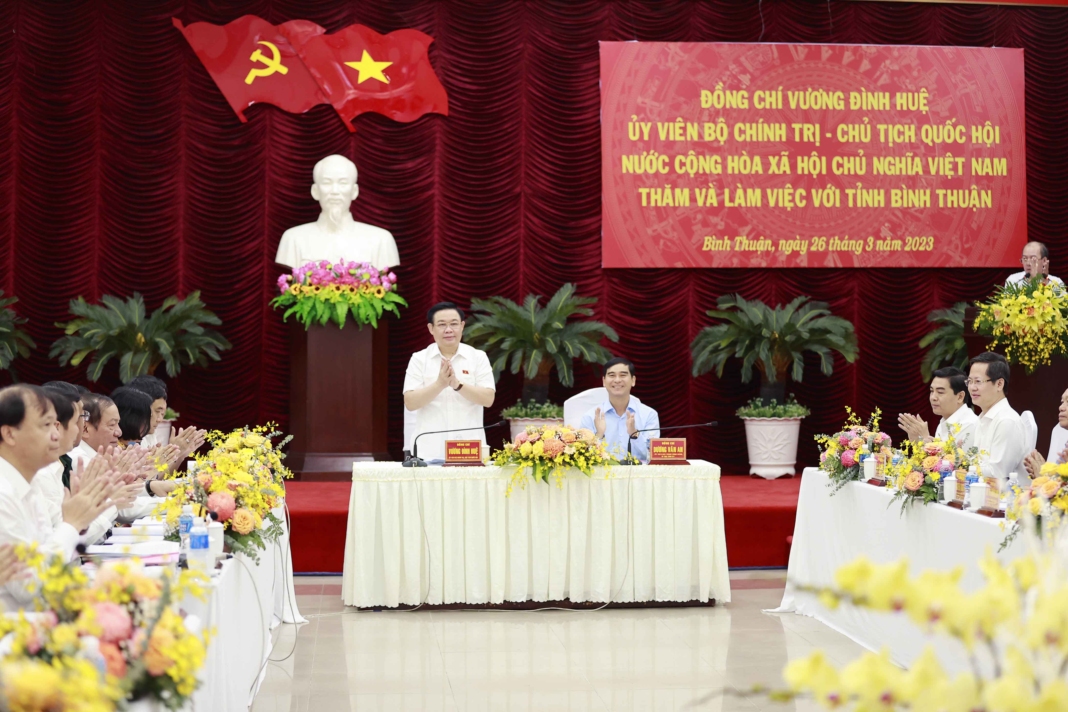 Chủ tịch Quốc hội Vương Đình Huệ cơ bản nhất trí với báo cáo của Ban Thường vụ Tỉnh ủy Bình Thuận, các ý kiến phát biểu tại cuộc làm việc, Chủ tịch Quốc hội ghi nhận và biểu dương sự cố gắng, nỗ lực và những thành tích của Đảng bộ, chính quyền, quân và dân tỉnh Bình Thuận.