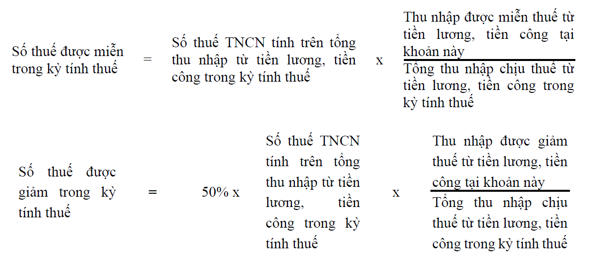 Trường hợp cá nhân vừa có thu nhập từ tiền lương, tiền công được miễn, giảm thuế theo quy định này vừa có thu nhập từ tiền lương, tiền công khác thì số thuế thu nhập cá nhân được miễn, giảm theo quy định này được xác định như sau