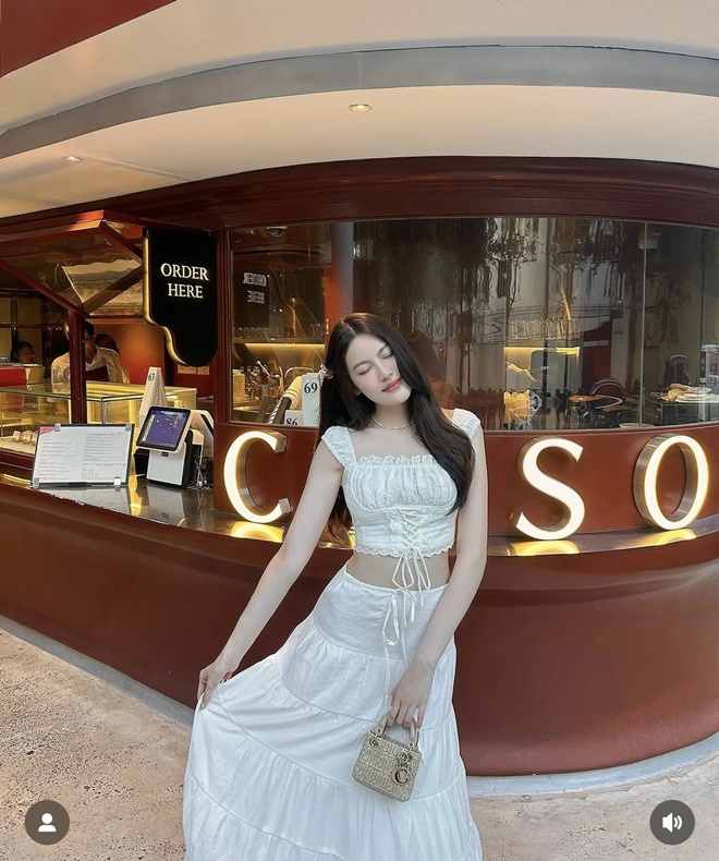 Tối 17/6, Tăng Mỹ Hàn tiếp tục trở thành tâm điểm tìm kiếm trên mạng xã hội sau khi loạt hình ảnh thân mật giữa cô và rapper HIEUTHUHAI được lan truyền rộng rãi. Hiện tại, cả hai vẫn giữ im lặng về tin đồn quan hệ tình cảm. Tăng Mỹ Hàn sở hữu vóc dáng gợi cảm, nhan sắc xinh đẹp, ưa chuộng phong cách nữ tính với loạt hàng hiệu đắt đỏ. Cô nàng lựa chọn một set đồ trắng hai mảnh mang phong cách boho hiện đại xen lẫn nét duyên dáng. Túi Lady Dior mini màu be sáng là điểm nhấn đắt giá, tôn lên vẻ sang trọng, nữ tính và quý phái.