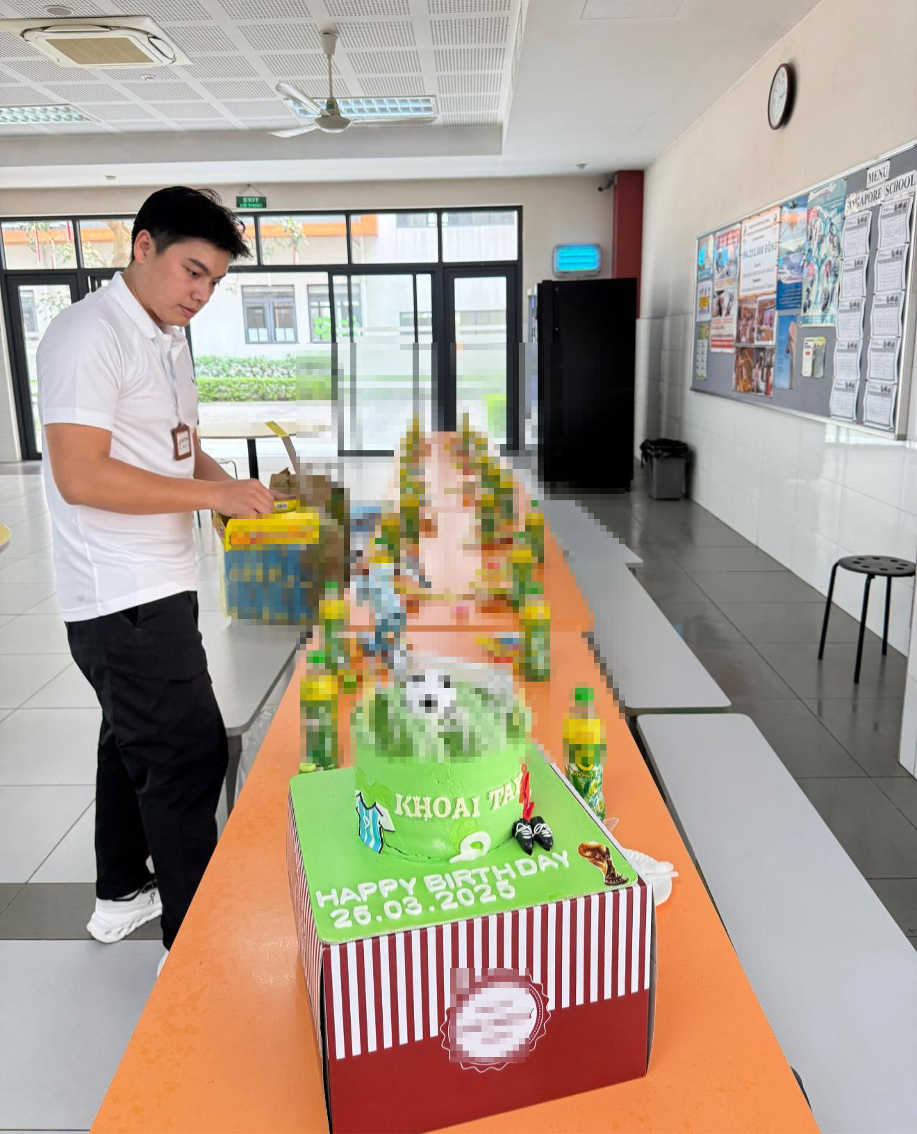 Trong hình, cậu nhóc vui vẻ check-in cùng các bạn. Bức ảnh còn đặc biệt hơn khi có sự xuất hiện của anh Ngọc Sơn - chồng Ly Kute. Ở khoảnh khắc khác, anh cẩn thận trang trí bàn tiệc sinh nhật cho con trai. Dù chỉ là những món đồ đơn giản nhưng từ hình ảnh ấy cho thấy anh rất yêu thương, chăm lo cho cậu nhóc.