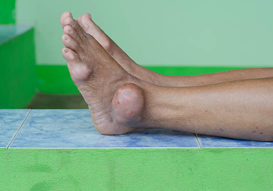 Cục tophi nổi tại khớp làm ảnh hưởng đến thẩm mỹ và khả năng vận động.