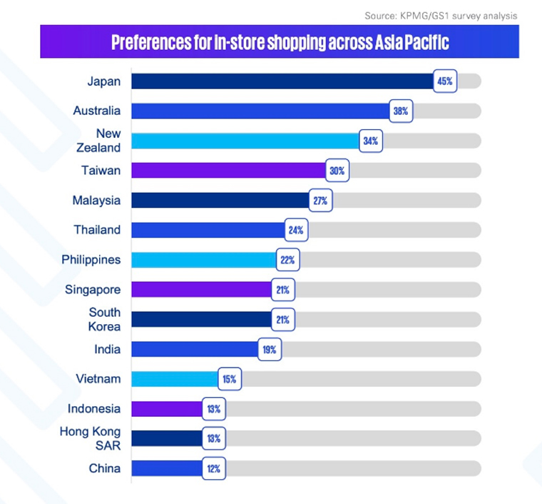 Khảo sát của KPMG và GS1, cho thấy phần lớn người tiêu dùng châu Á - Thái Bình Dương có sở thích mua sắm tại cửa hàng