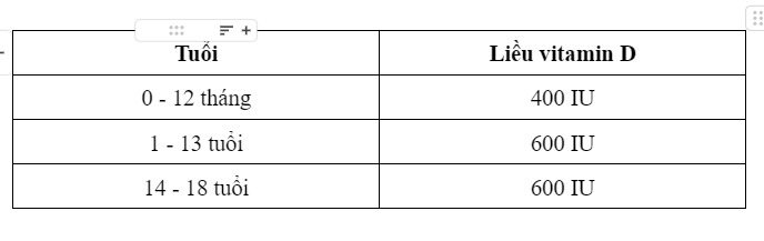 1. Liều lượng bổ sung vitamin D
