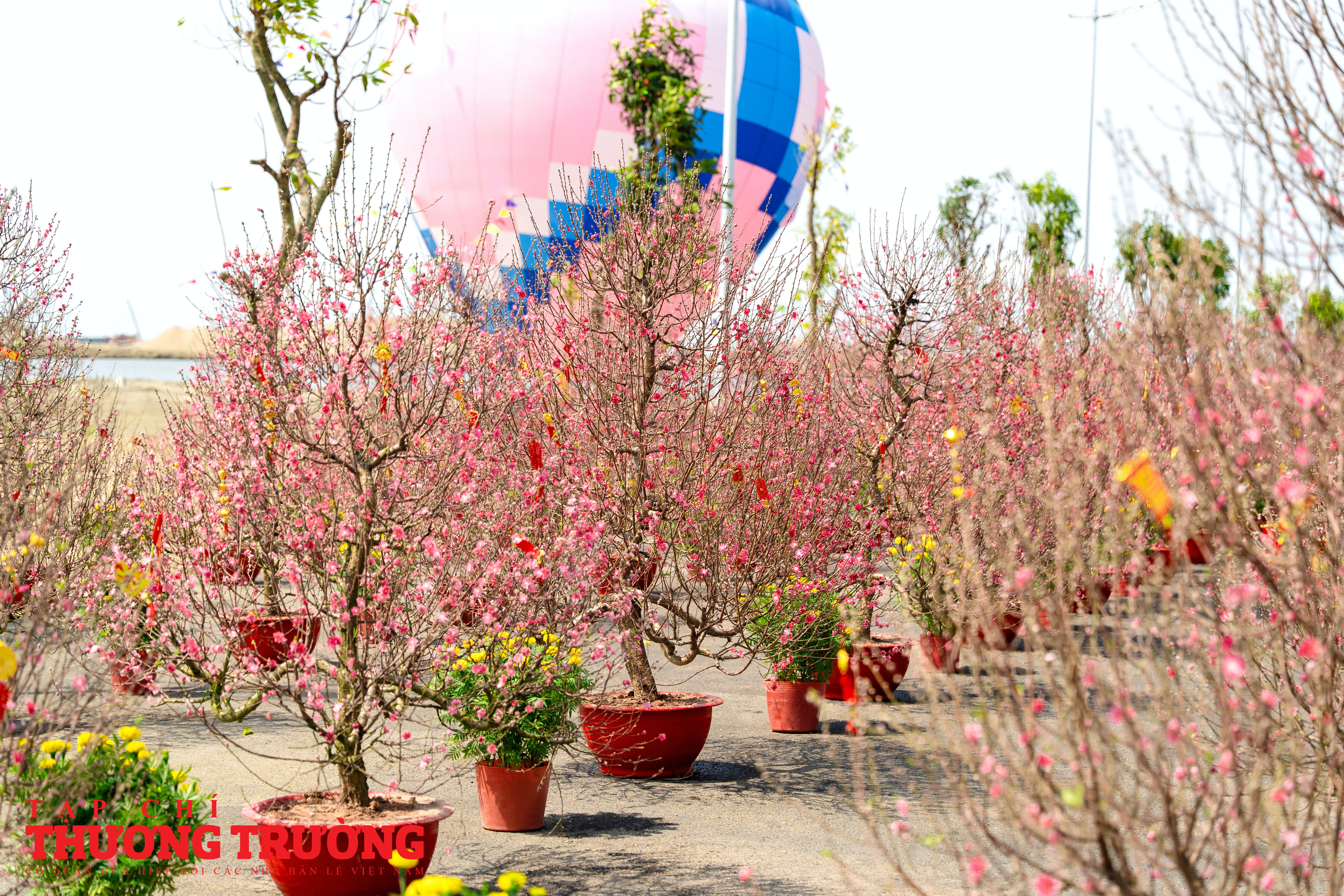 Không gian lễ hội Xuân tại Vinhomes Green Paradise Cần Giờ rực rỡ sắc màu với hàng trăm gốc mai, đào được bài trí dọc các trục đường chính, tạo nên khung cảnh Tết truyền thống giữa thiên nhiên biển - rừng.