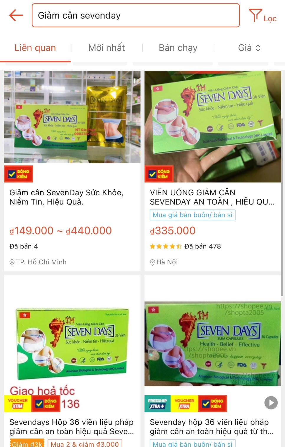 Đặc biệt hơn, trên các sàn TMĐT các sản phẩm này vẫn được bày bán công khai và quảng cáo vô tội vạ. Điển hình trên sàn TMĐT shopee cũng bày bán rất công khai, chỉ cần gõ từ khóa “thực phẩm giảm cân cấp tốc” là cho ra hàng trăm loại TPCN giảm cân.