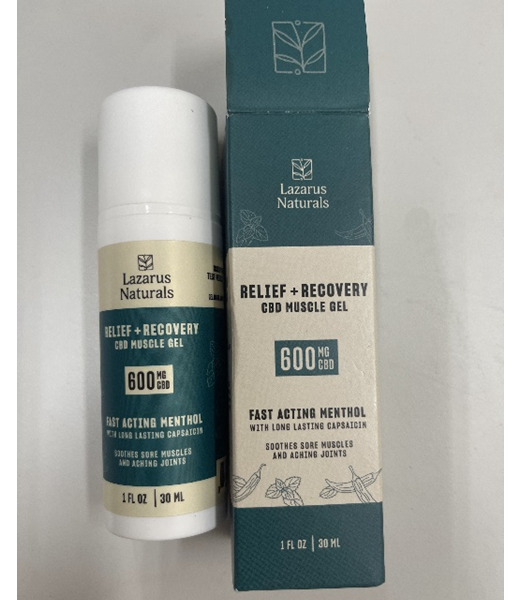 - Lọ nhựa có nhãn hiệu “Lazarus Naturals RELIEF + RECOVERY CBD MUSCLE GEL 600 MG CBD" loại 30ml có ma túy loại Delta-9-tetrahydrocanabinol.