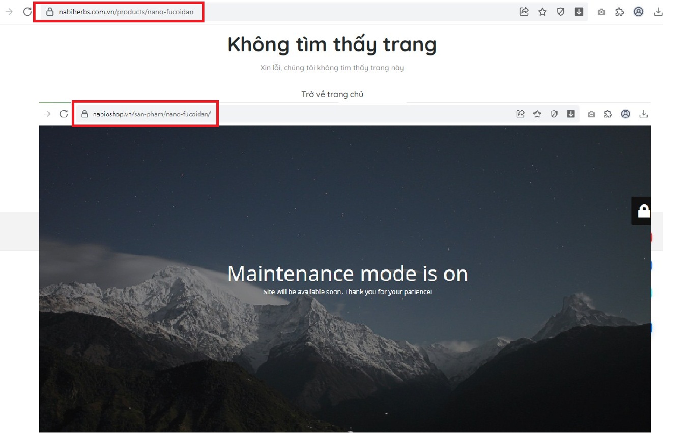 2 đường link đăng tải nội dung quảng cáo sản phẩm thực phẩm bảo vệ sức khỏe Nano Fucodian hiện đã bị vô hiệu hóa.