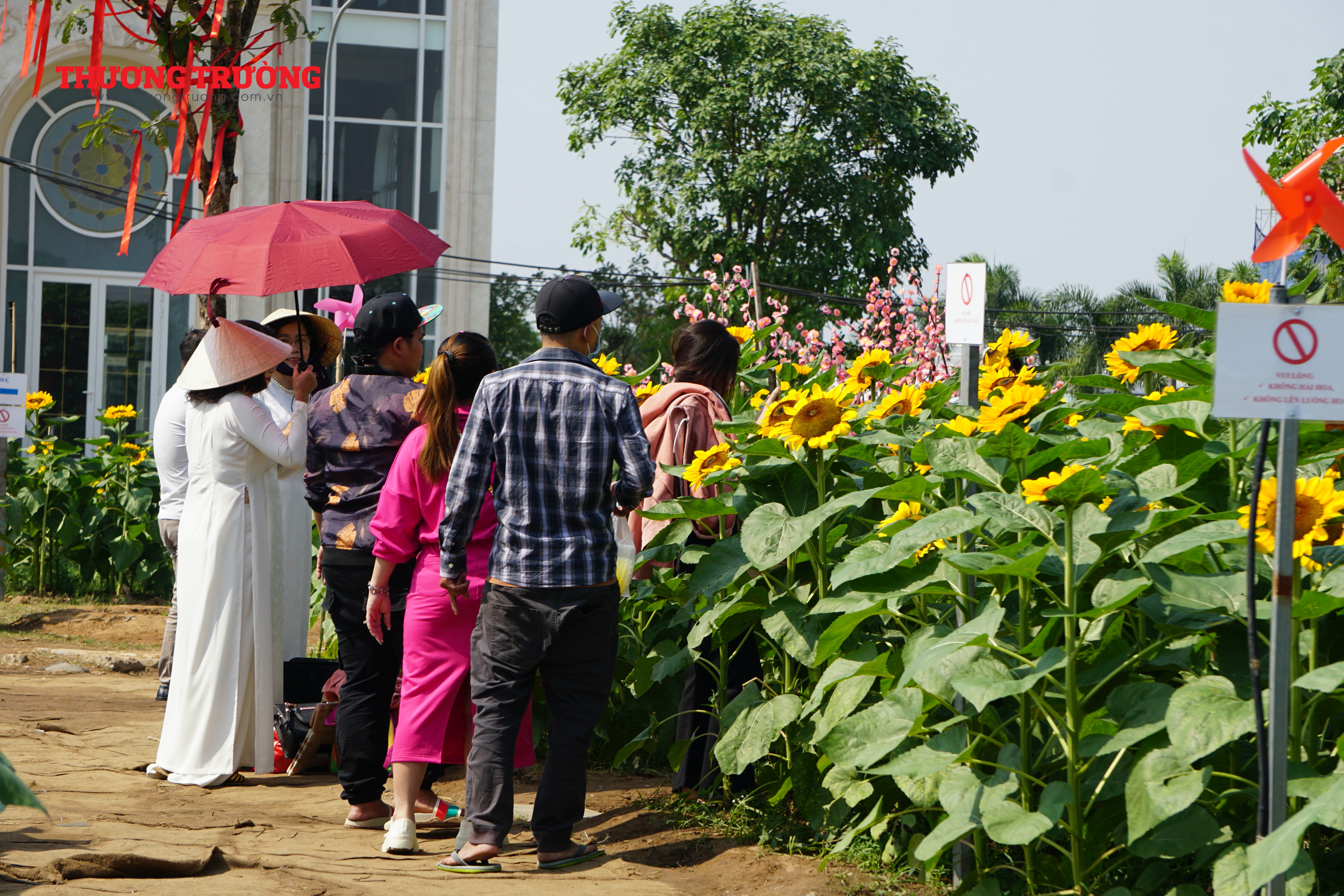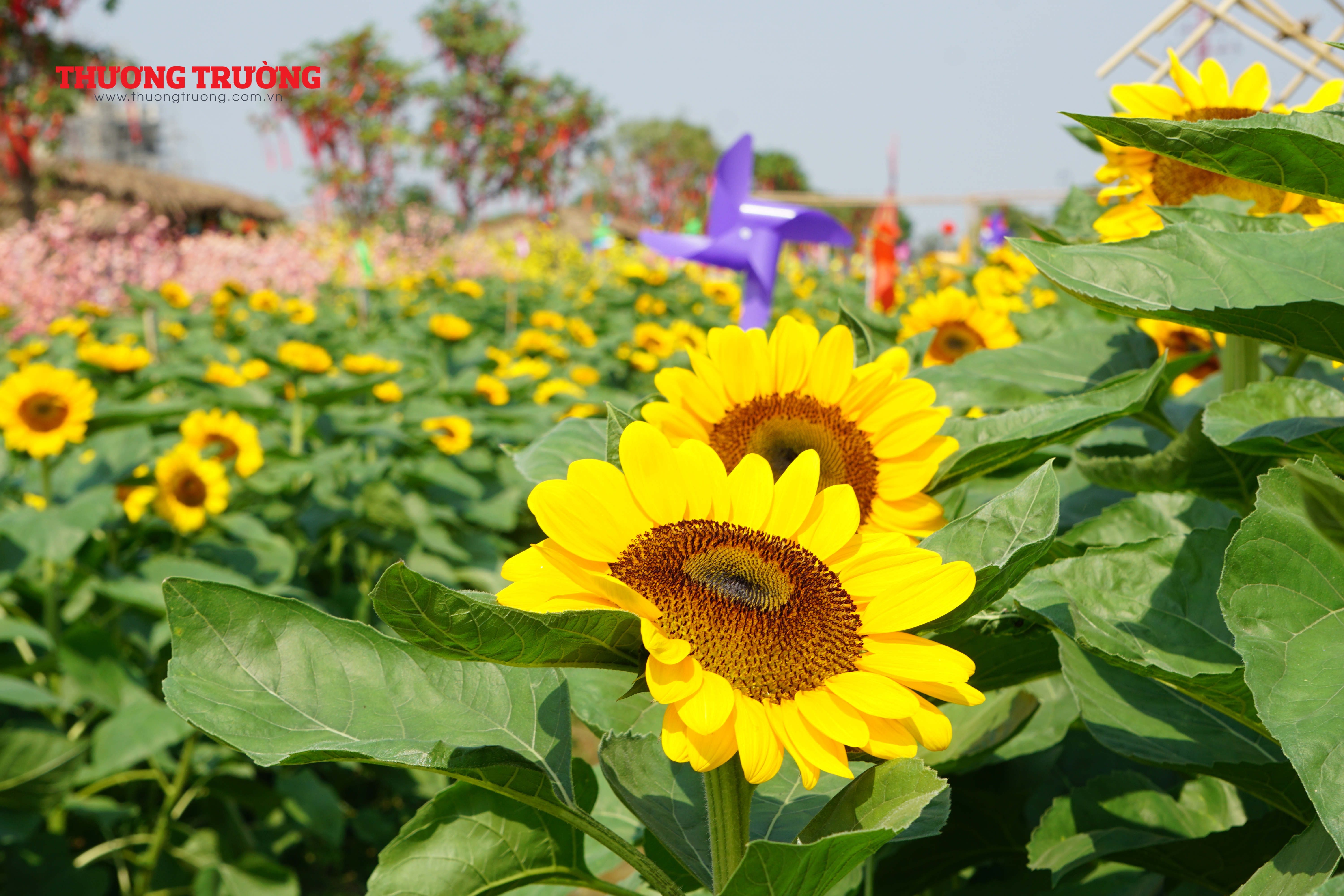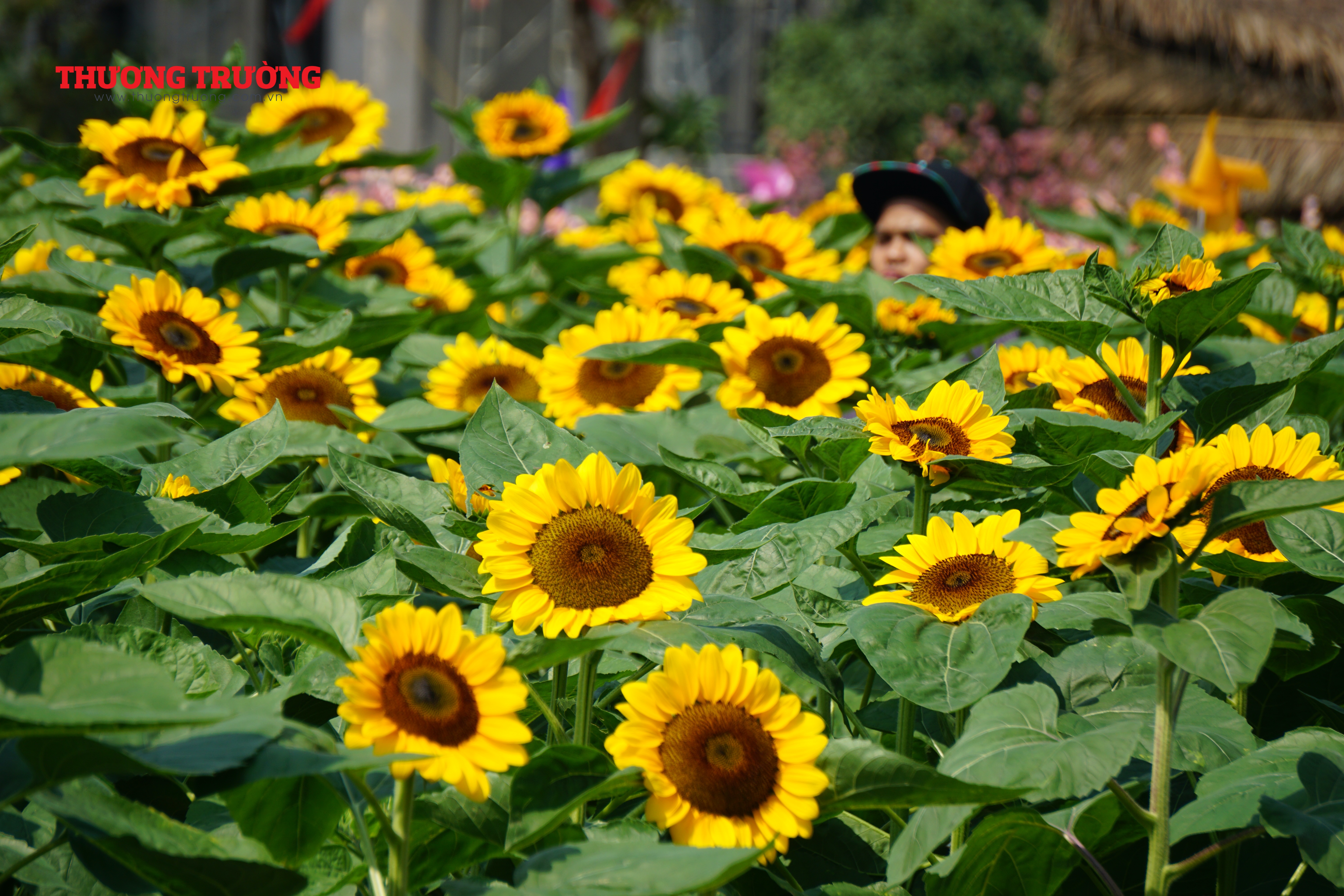 Nằm sâu trong khu đô thị Vạn Phúc, vườn hoa hướng dương này có diện tích rộng hơn 12.000 mét vuông với hơn 50.00 cây hoa được trồng ngay hàng thẳng lối, xen kẽ là các tiểu cảnh tràn ngập sắc xuân, đây được đánh giá là vườn hoa hướng dương phục vụ Tết Quý Mão rộng nhất trên địa bàn TP.HCM ở thời điểm hiện tại.