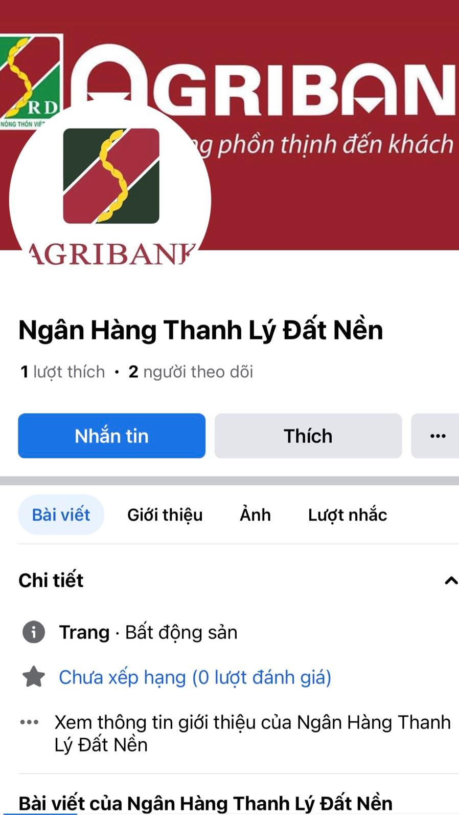 Để tạo niềm tin cho khách hàng, các đối tượng “cò” BĐS này đã ngang nhiên mạo danh các chi nhánh, phòng giao dịch của các ngân hàng đang có trụ sở trên địa bàn có đất muốn bán. Đặc biệt, các đối tượng tự lập các Facebook ảo lấy ảnh bìa, ảnh đại diện là một ngân hàng nào đó. Như một tài khoản có tên “Ngân hàng Thanh Lý Đất Nền”, có hình đại diện và ảnh bìa là logo của Ngân hàng Agribank.