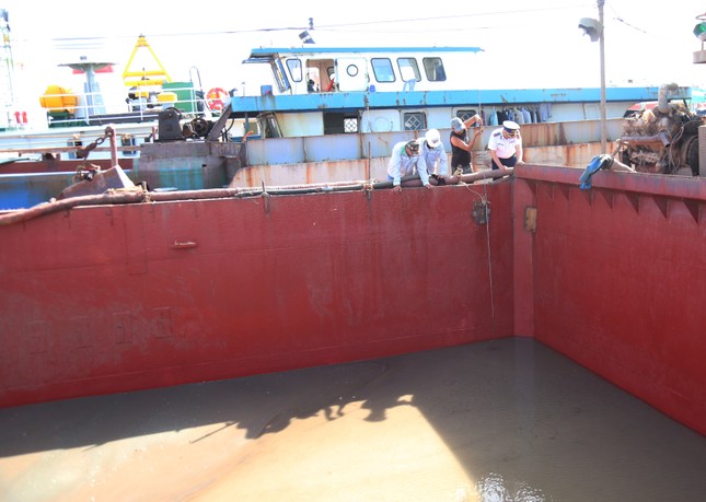 Kiểm tra số lượng cát trên tàu HP-4251. Ảnh: Bộ Tư lệnh Vùng Cảnh sát biển 3.