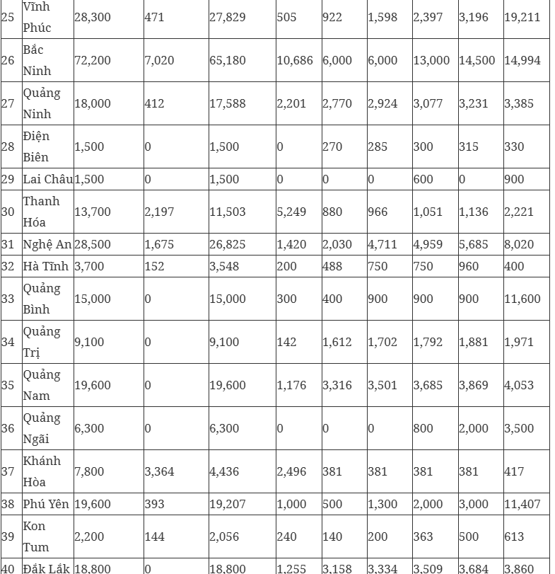 Tại Quyết định số 444/QĐ-TTg ngày 27/2/2025, Thủ tướng Chính phủ giao chỉ tiêu số căn hộ các địa phương phải hoàn thành giai đoạn 2025 - 2030 là 995.445 căn hộ; trong đó năm 2025 là 100.275 căn hộ, năm 2026 là 116.347 căn hộ, năm 2027 là 148.343 căn hộ, năm 2028 là 172.402 căn hộ; năm 2029 là 186.917 căn hộ và năm 2030 là 271.161 căn hộ.