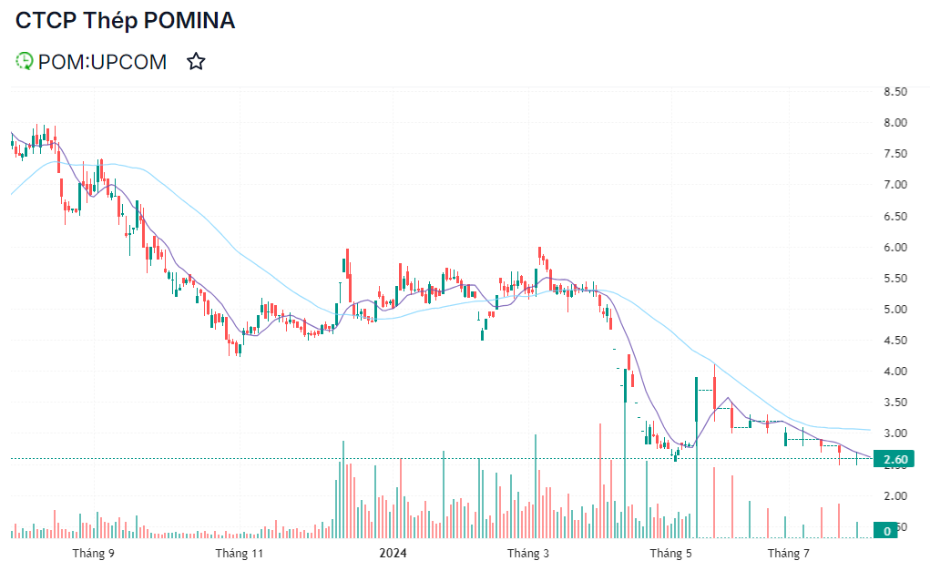 Tính tới phiên giao dịch gần nhất ngày 26/7, cổ phiếu POM đóng cửa giá tham chiếu 2.600 đồng/cổ phiếu, mức thấp nhất kể từ khi bắt đầu giao dịch trên sàn chứng khoán cách đây 14 năm. Vốn hoá thị trường của công ty chỉ còn 727 tỷ đồng.