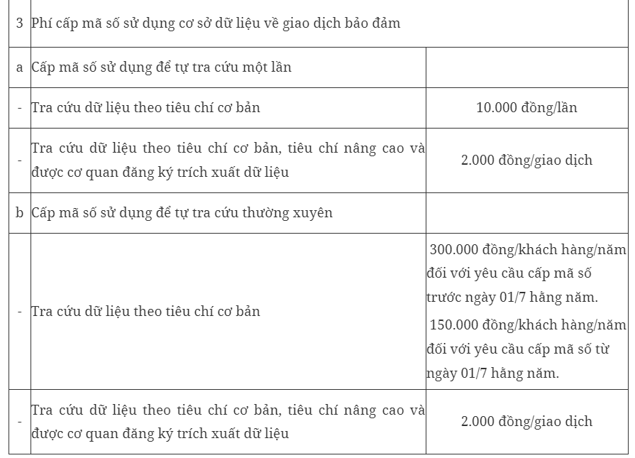 c) Phí cấp mã số sử dụng cơ sở dữ liệu về giao dịch bảo đảm.