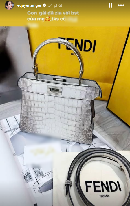 Còn nhớ mới đầu năm nay, Lệ Quyên gây xôn xao khi chia sẻ món quà xa xỉ được một người chị thân thiết gửi tặng. Theo đó, người đẹp chính thức bổ sung thêm vào bộ sưu tập túi xách "cá sấu bạch tạng" một chiếc Fendi dòng Himalaya mà cô đã yêu thích từ lâu.