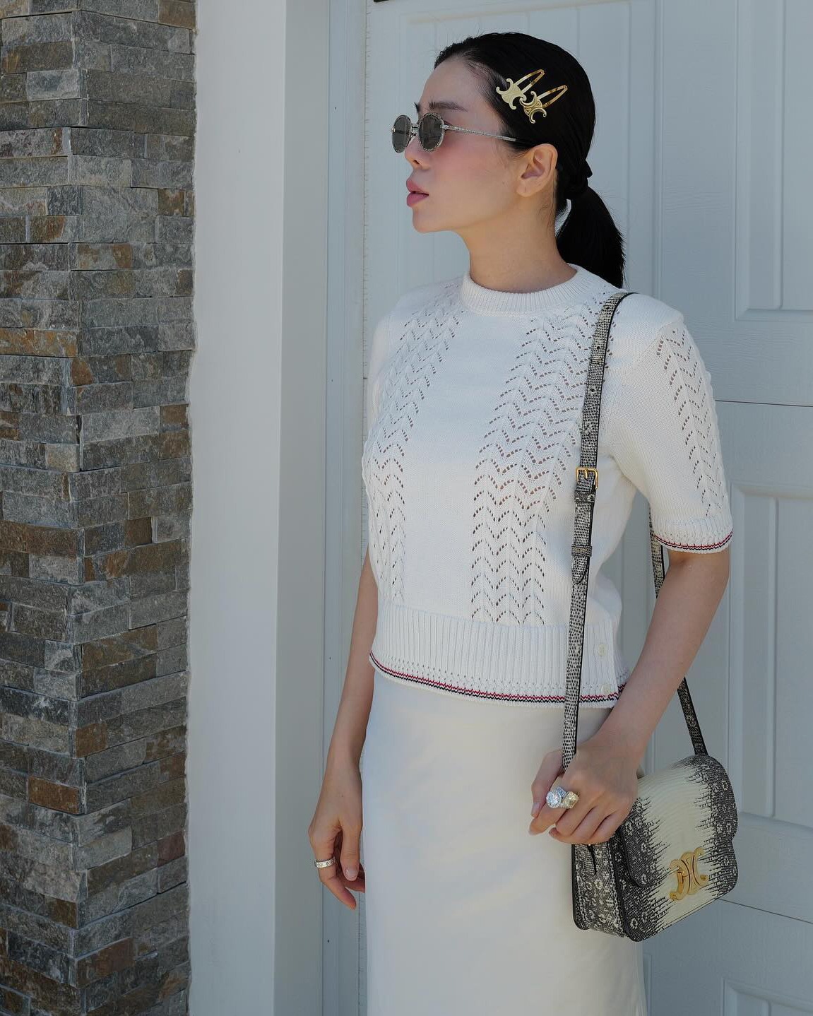 Lệ Quyên dạo phố sương sương với chiếc túi Lady Dior Himalayan Crocodile có giá khoảng 900 triệu đồng.