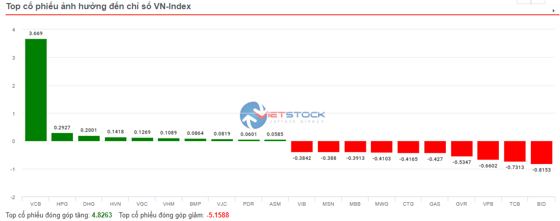 VCB ngược dòng tăng mạnh nhưng không đủ sức kéo điểm cho thị trường