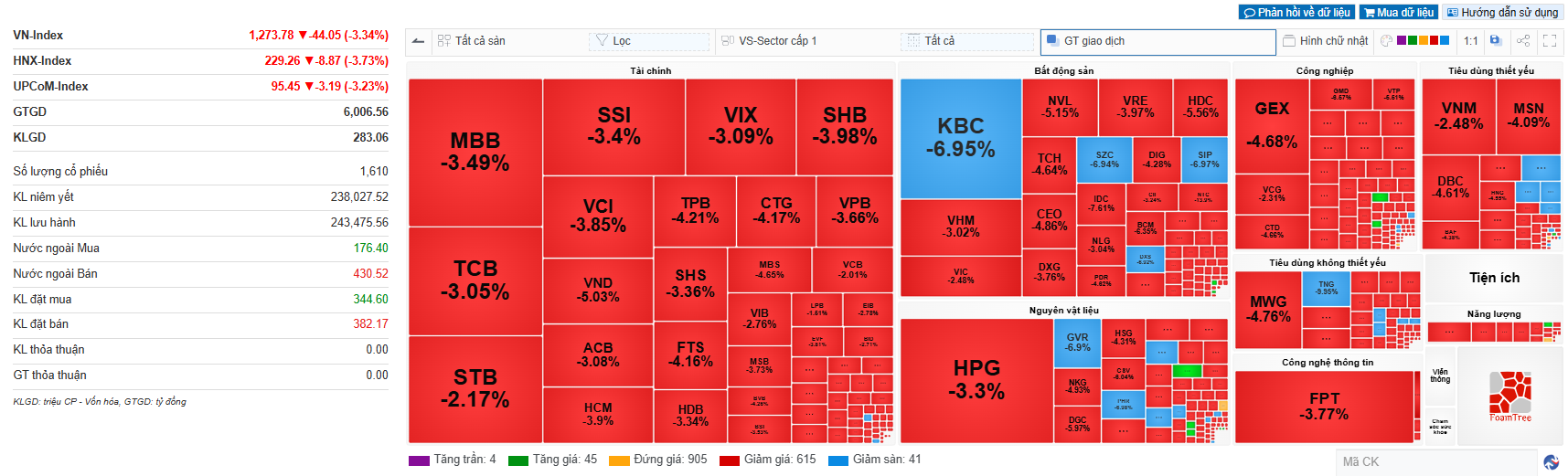 Thị trường chứng khoán Việt Nam phản ứng tiêu cực ngay từ những giây giao dịch đầu phiên sáng nay. Ngay sau khi mở cửa, lực bán áp đảo khiến hàng trăm mã cổ phiếu trên sàn HOSE lộ mức giá sàn, trong khi đó các mã trên sàn HNX và thị trường UPCoM giảm 4 - 5% do cơ chế khớp lệnh ngay đầu tiên.