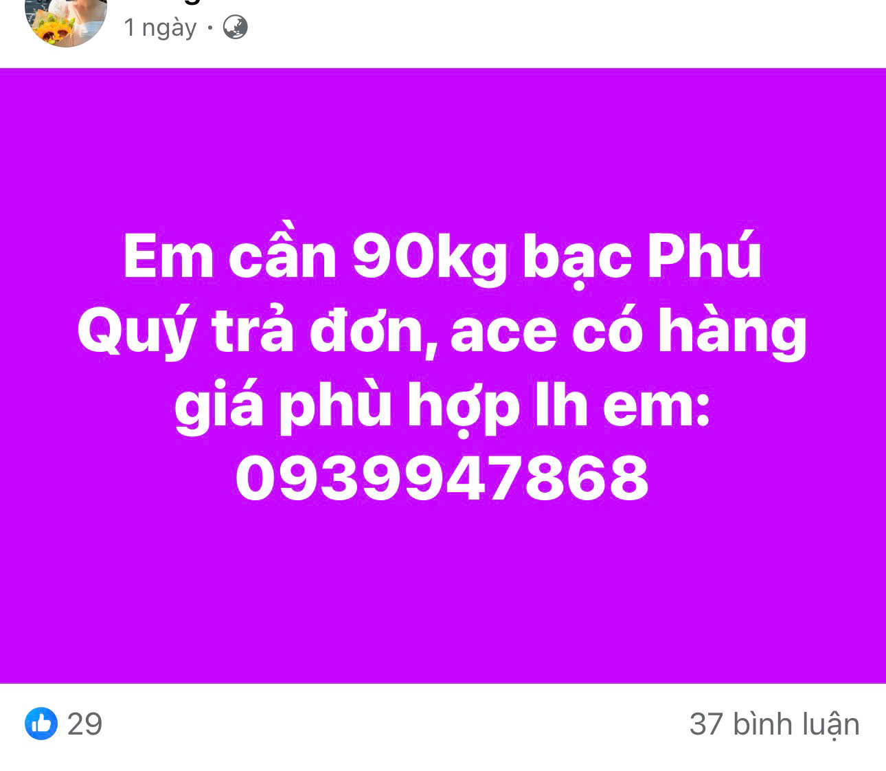 Hiện nay những hôi chơi, mua bán bạc nguyên chất xuất hiện rất nhiều trên mạng xã hội.