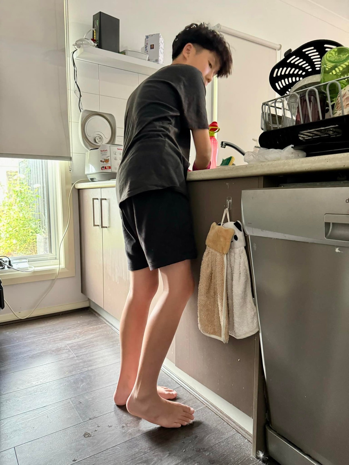 Bà xã Trí Rùa cũng cho biết con trai đầu lòng có chiều cao vượt trội từ bé. Khi mới 10 tuổi, Coca đã cao 1m47, nặng 37kg. Nữ nghệ sĩ chia sẻ: "Coca cao hẳn nên vượt hơn 2 em dù 3 anh em cách nhau đều 22 tháng. Các con mình phom xương nhỏ, mình dây, không đứa nào mập, chỉ dài thôi".