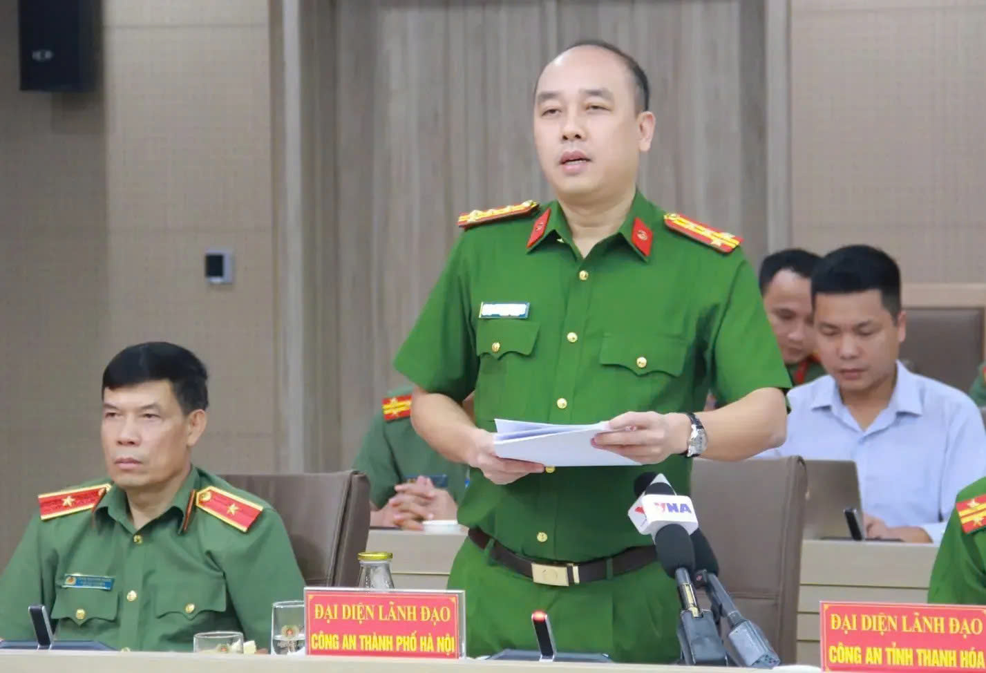 Đại tá Nguyễn Đức Long, Phó Giám đốc Công an Hà Nội thông tin tại họp báo.