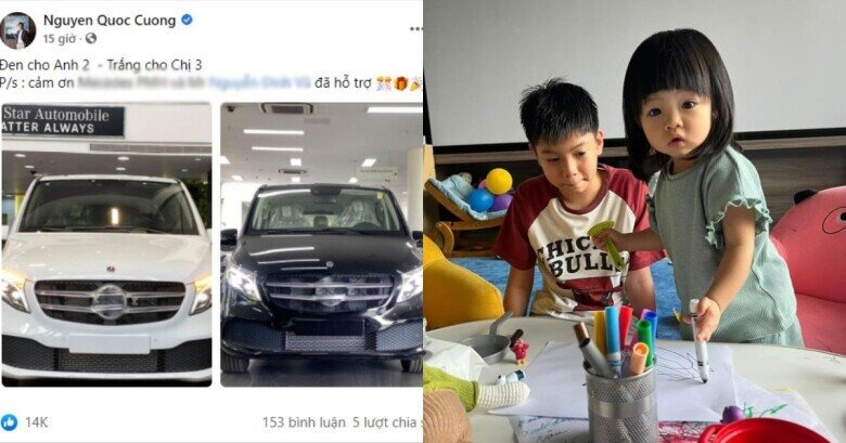 Cường Đô La chi tiền tỷ mua xế hộp tặng cho các con. Cường Đô La đăng tải hình ảnh về 2 chiếc xế hộp Mercedes-Benz V 250 Luxury có tổng trị giá 6 tỷ đồng kèm dòng trạng thái "Đen cho anh 2 - Trắng cho chị 3".