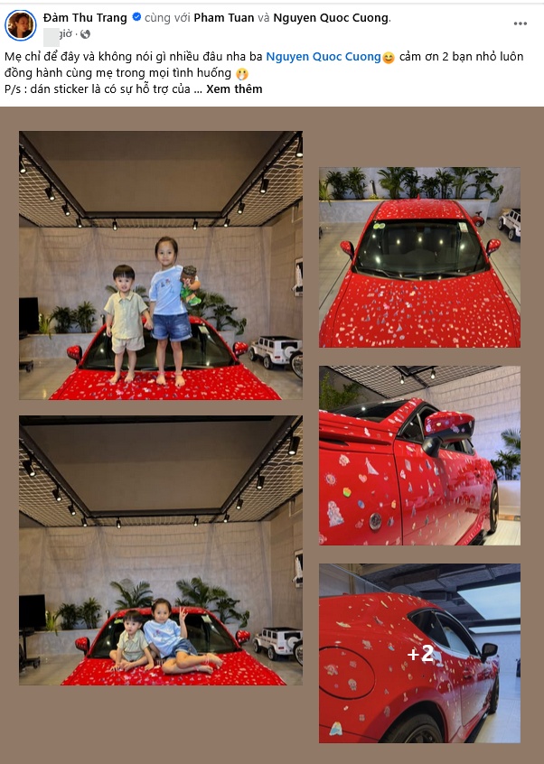 Đàm Thu Trang khoe tác phẩm trang trí siêu xe 1,7 tỷ từ hai nhóc tỳ nhận được sự quan tâm.